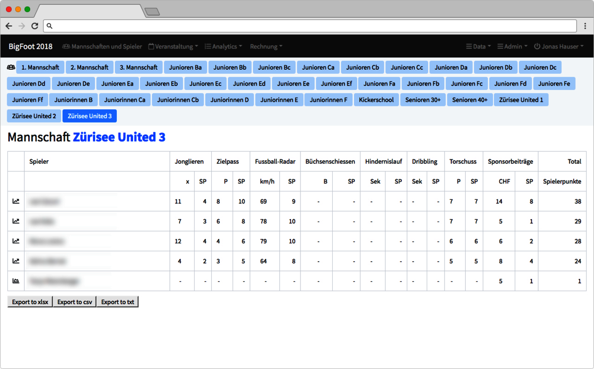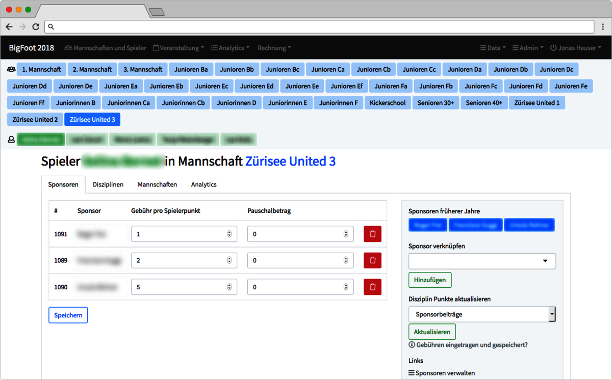 Sponsoring-Anlass-Organisations-Anwendung für Sport-Vereine.